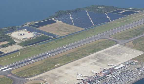 海に浮かぶ空港に太陽光発電所、1万世帯分の電力を海底ケーブルで